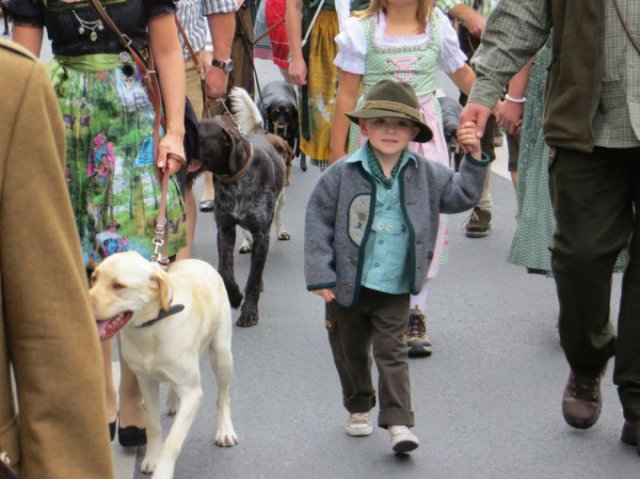 Wie in den Vorjahren war die Jägervereinigung Teil des Festumzugs zum Herbstplärrer. Vielen Dank an die Bläsergruppe Horrido, die Jagdhundeführer sowie Theo Diebold, der – schon traditionell – den Festwagen stellt und zieht!
