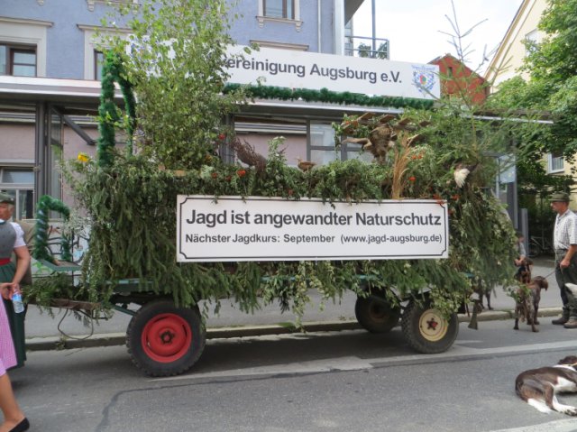 Auch im Jahr 2013 beteiligte sich die Jägervereinigung, gemeinsam mit den Bläsergruppe Horrido und den Jagdhundeführern, am Festumzug zur Eröffnung des Plärrers. Ein herzlicher Dank für die Leihe (und das Zugfahrzeug) des von uns gestalteten Motivwagens geht an Herrn Theo Diebold!