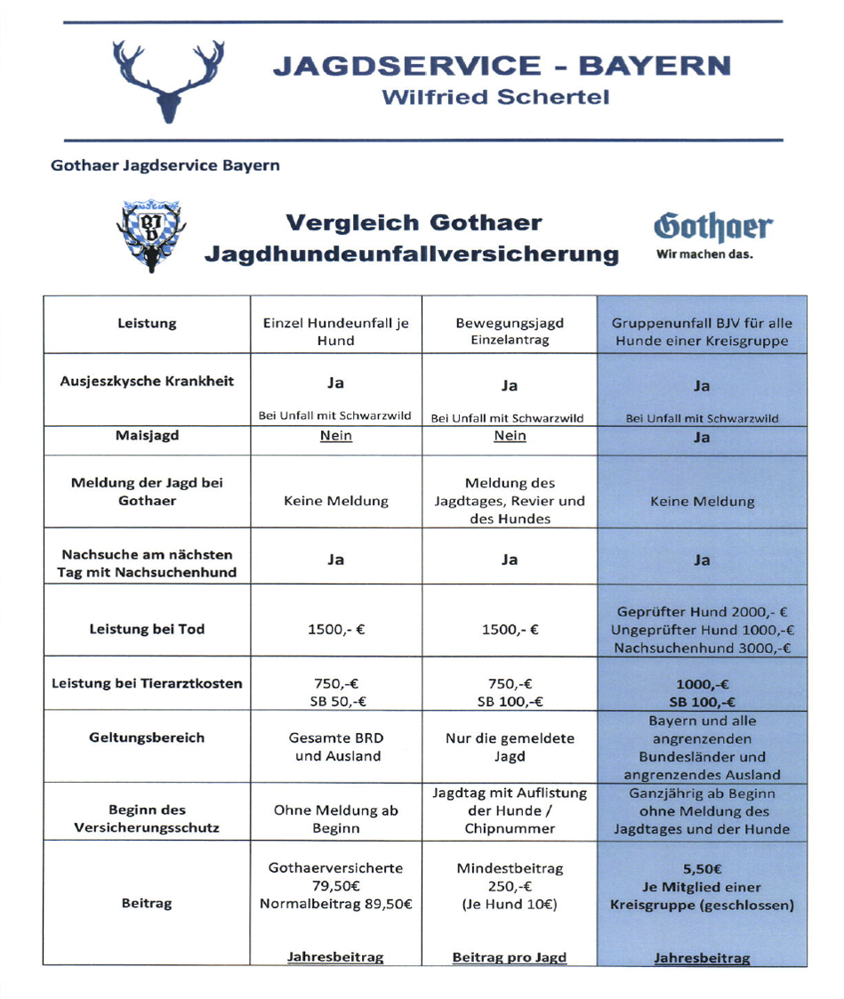 Die Jägervereinigung Augsburg e.V. beteiligt sich an einer Jagdhunde-Unfallversicherung und hat für ihre Mitglieder eine Jagd-Rechtsschutzversicherung abgeschlossen.